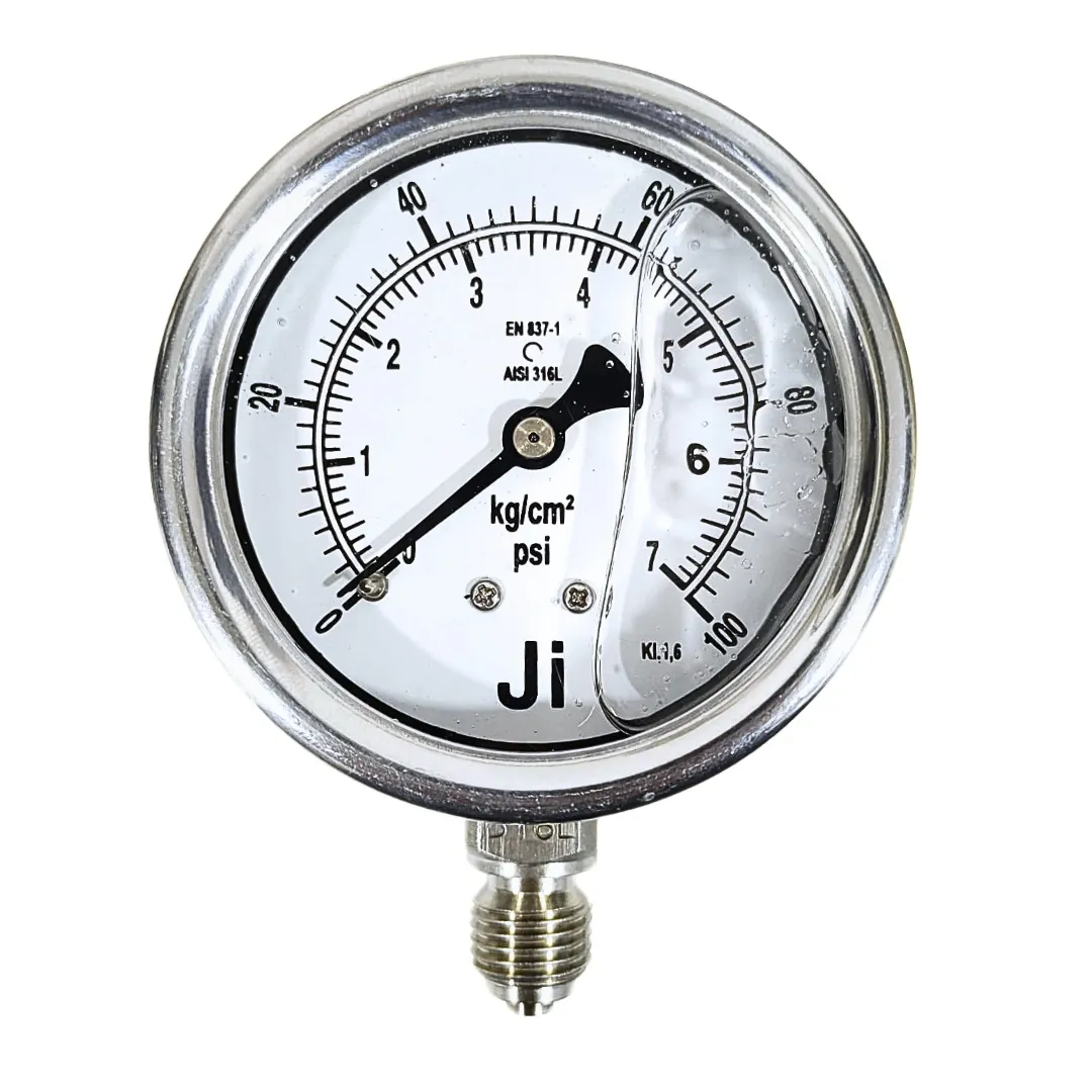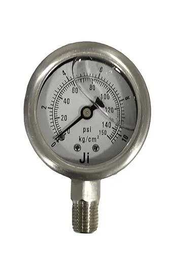 Industrial Pressure Gauge Glycerin Filled, 2 1/2″ (63 mm) Dial, Range 0 to 7 Kg/Cm2 with Dual Scale of 100 PSI, Direct Mounting Bottom Entry, 1/4″ BSP (M) Connection, SS Case & SS Wetted Parts (Case Bayonet Type)