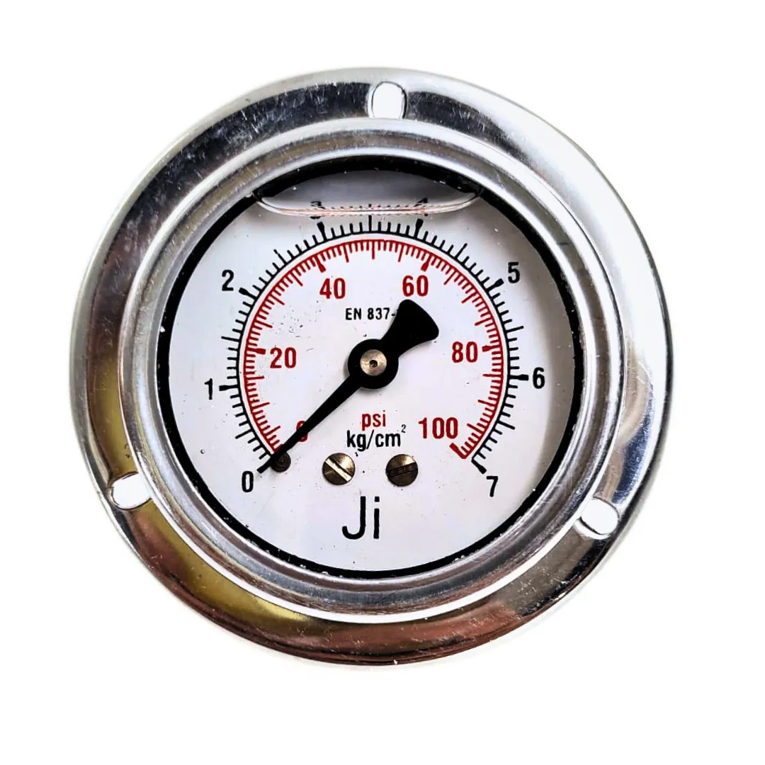 Industrial Pressure Gauge Glycerin Filled, 2 1/2″ (63 mm) Dial, Range 0 to 7 Kg/Cm2 with Dual Scale of 100 PSI, Direct Mounting Back Entry, 1/4″ BSP (M) Connection, SS Case & SS Wetted Parts (Case Crimping Type)