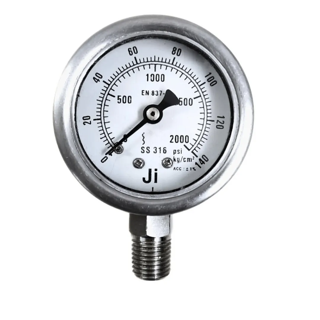 Industrial Pressure Gauge Glycerin Filled, 2 1/2″ (63 mm) Dial, Range 0 to 70 Bar with Dual Scale of 1000 PSI, Direct Mounting Bottom Entry, 1/4″ NPT (M) Connection, SS Case & SS Wetted Parts (Case Bayonet Type)