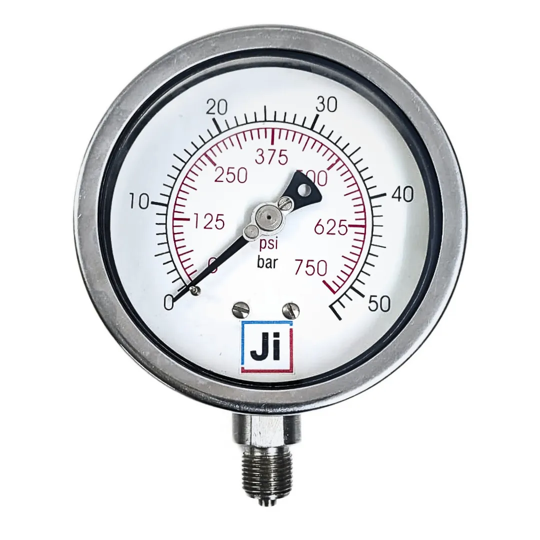 Industrial Pressure Gauge, 4″ (100 mm) Dial, Range 0 to 50 Bar with Dual Scale of 750 PSI, Direct Mounting Bottom Entry, 3/8″ BSP (M) Connection, SS Case & SS Wetted Parts (Case Bayonet Type)