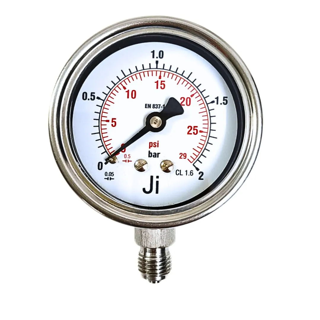 Industrial Pressure Gauge, 2 1/2″ (63 mm) Dial, Range 0 to 2 Bar with Dual Scale of 29 PSI, Direct Mounting Bottom Entry, 1/4″ BSP (M) Connection, SS Case & SS Wetted Parts (Case Bayonet Type)